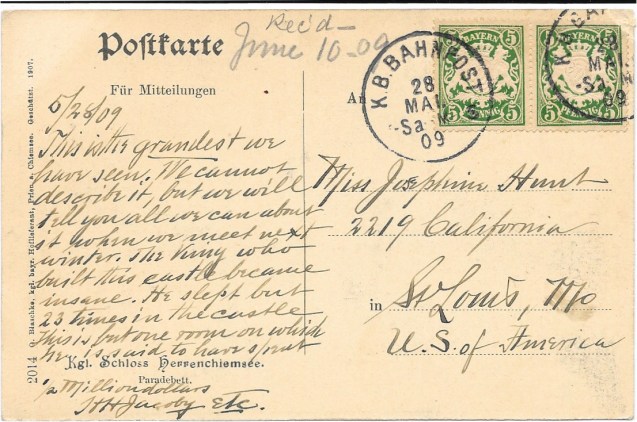 Home at 6:30, glad to stay there and rest and talk about the glorious day which we have passed. And, all the day, in the carriage as well as in the boat, we had one seat to spare and wishing that you or Tante Lenchen or some loved one would be with us to share the pleasure.