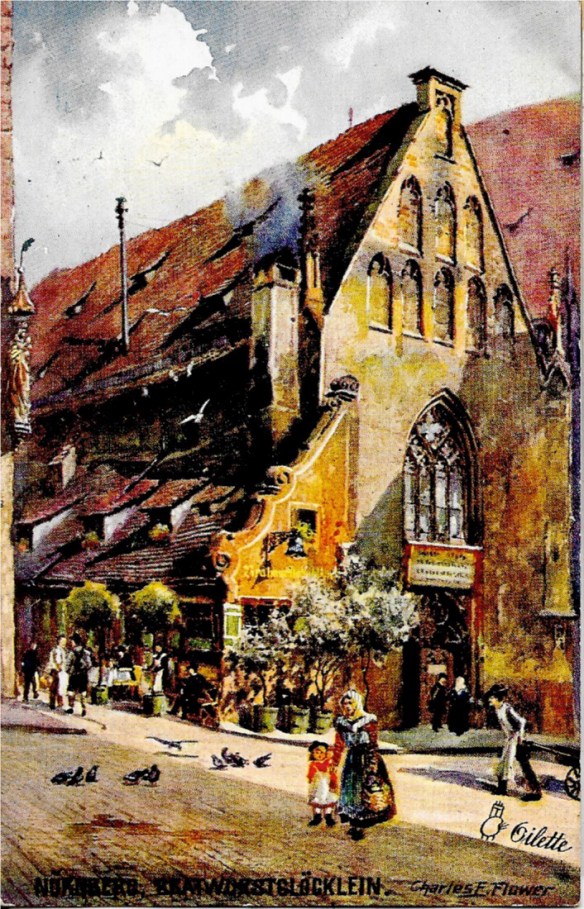 The wild, rugged walls of the Watsmann mountain in the background rise to the dizzy height of 10,000 feet, and here we rested under chestnut trees, now in full bloom and sipped the brown beverage.