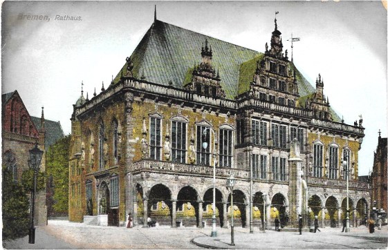 We took a carriage ride in the afternoon to the Freihafen, thence through the Langestrasse with its quaint old houses. “The Kornhaus,” erected in 1591, which on account of its architectural beauty, as well as on account of its history, may be called one of the most important old buildings of Bremen.