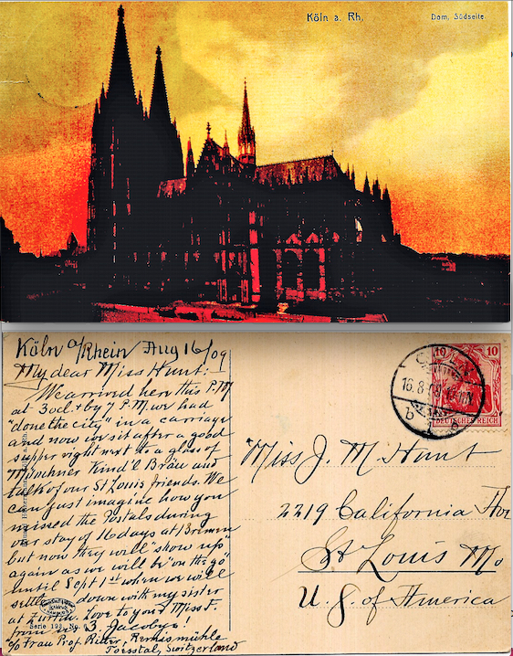 Shopping and bought a steamer trunk as we cannot possibly pack our things into the four suit cases. I am glad that the matter has been settled. I forgot to mention that we visited the Dom (Cathedral) the other day.
