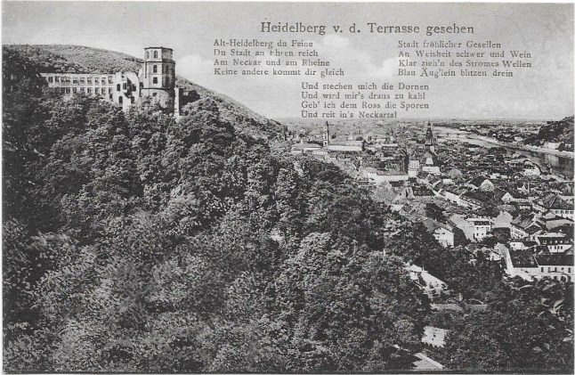 [Editor’s note: I am unable to find a good translation for the poem. Suffice it to say that it’s complimentary to Heidelberg.]