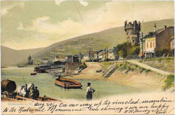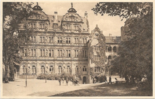 Arose at 7 o’clock and took a train for Heidelberg, where we arrived at 12 o’clock in time to dress for dinner. We are stopping at the Grand Hotel and took a cab to the grand old Schloss after dinner.